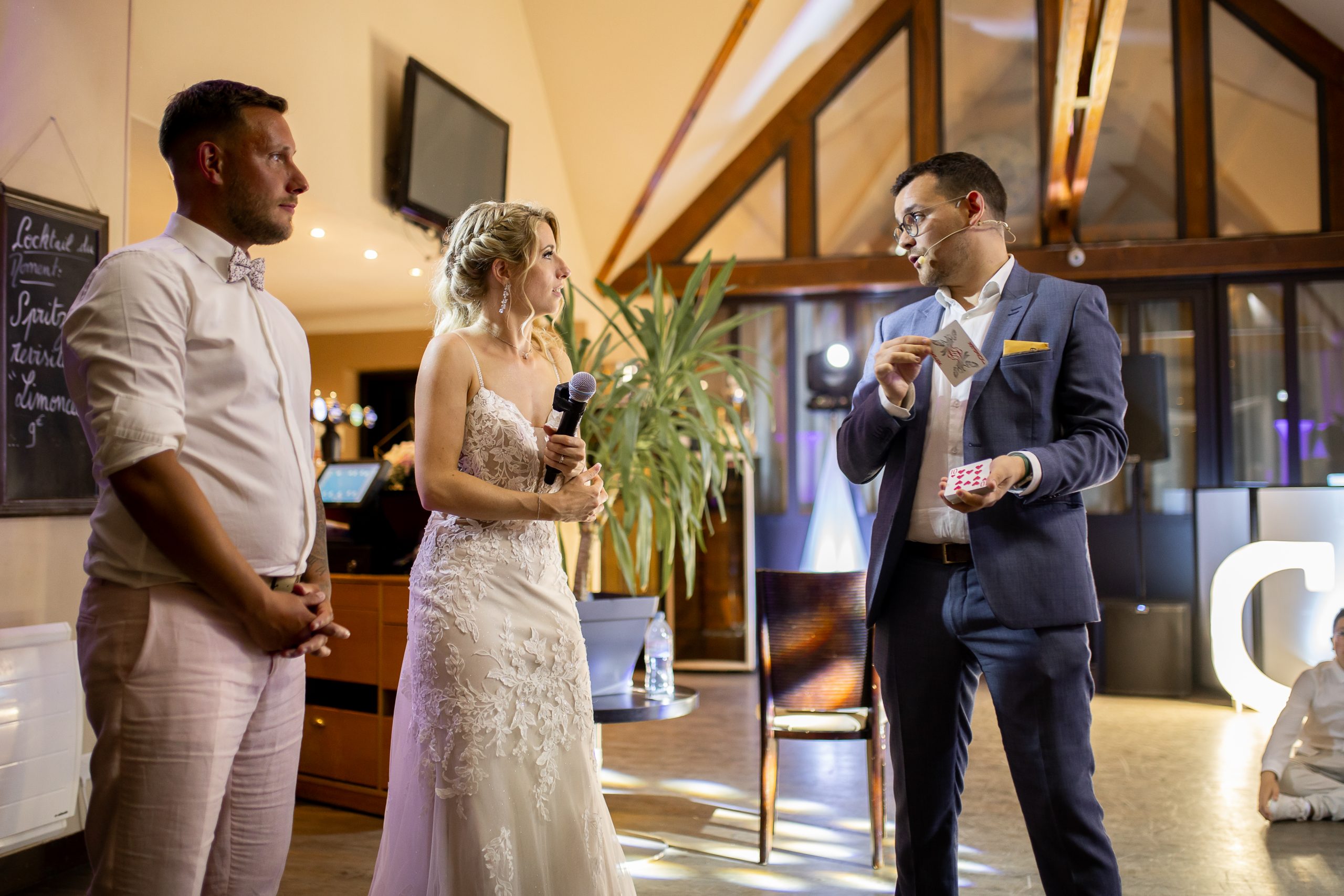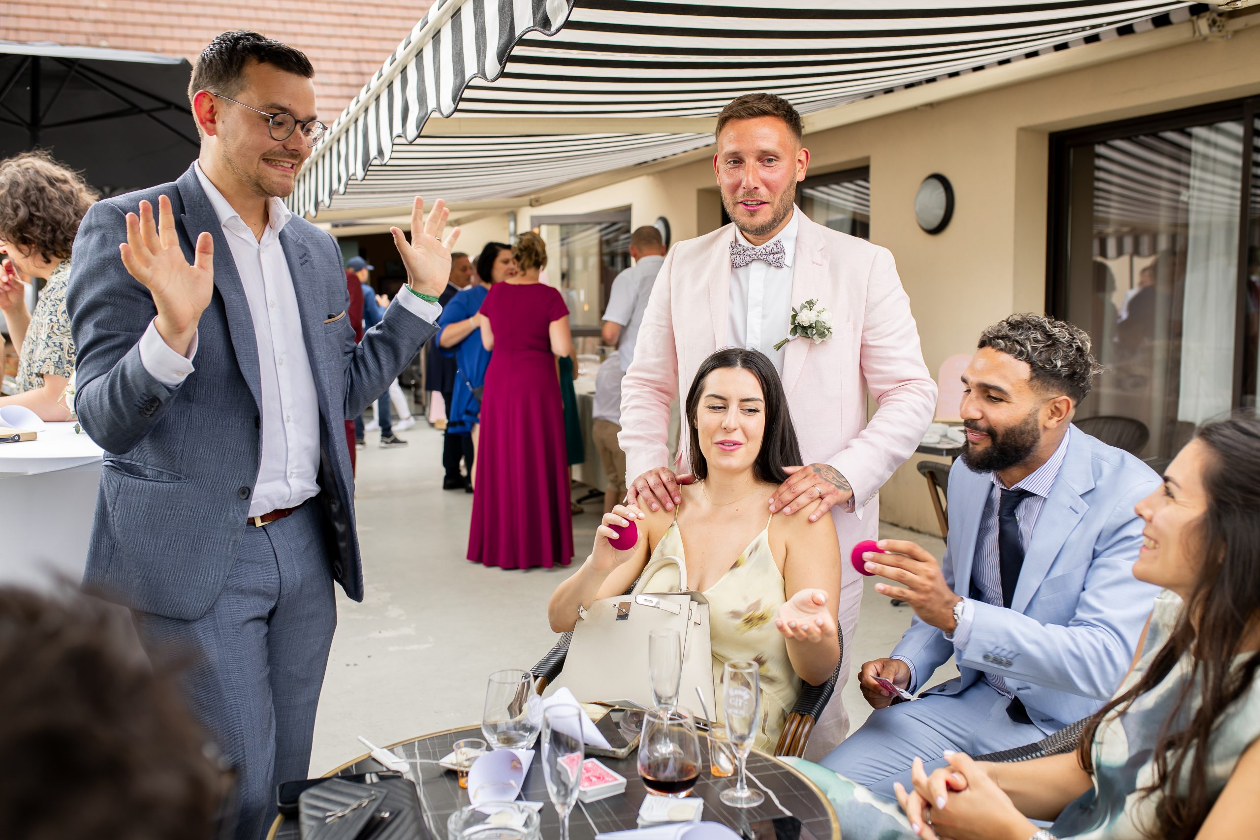 Il a une approche très psychologique et bienveillante (il est aussi mentaliste). Il ne se contente pas de faire des tours, il crée du lien entre vos convives. Résultat : une ambiance détendue immédiate, parfaite pour des souvenirs photos naturels.