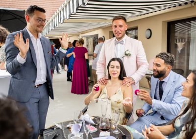 Mais soyons honnêtes : lors du vin d’honneur, il arrive que les invités soient un peu timides, surtout s’ils ne se connaissent pas entre eux. C’est là que le choix de l’animation fait toute la différence pour l’ambiance… et pour vos photos !
